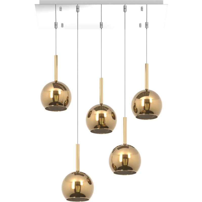 Collezione Future IL FUTURO DELLA LUCE È ADESSO Sospensione 5 luci dal rosone rettangolare con struttura in metallo finitura cromo e da 5 vetri di uguale dimensione colore oro.. Le finiture dei vetri cromo, rame, oro e ambra sono trattamenti superficiali che riducono solo parzialmente l'emissione luminosa. La finitura trasparente può essere naturalmente abbinata alle altre. Le strutture in metallo sono disponibili nelle finiture cromo, bianco e ottone satinato, con il diffusore in vetro disponibile in tutte le finiture esistenti.Possibilità di creare una composizione componibile in base ai componenti della sospensione scelti.Questo articolo è disponibile in diverse finiture e/o dimensioni. E' possibile indicarlo nell'apposito campo NOTE presente in conclusione di ordine oppure contattarci dopo aver effettuatol'ordine.
