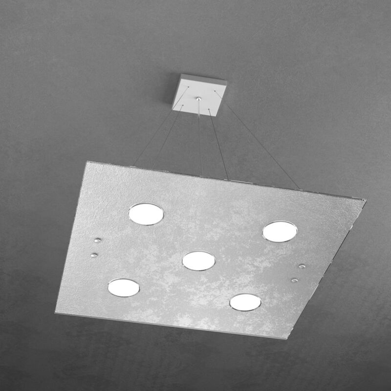 Collezione Path IL CAMMINO VERSO L'ILLUMINAZIONE SI FA BRILLANTE Plafoniera realizzata con lastre quadrate di vetro extrachiaro in finitura foglia argento, il cui lato a vista è trasparente con colorazione retrostante.. Il punto di forza del prodotto consiste nel non utilizzare dei led integrati ma una lampadina Gx53 che, una volta montata, arriva a filo della lastra di vetro e può essere facilmente sostituita dall'esterno. Disponibile anche nella finitura tortora scuro. Disponibile anche nella versione sospensione 5 luci più 2 in tutte le finiture disponibiliQuesto articolo è disponibile in diverse finiture e/o dimensioni. E' possibile indicarlo nell'apposito campo NOTE presente in conclusione di ordine oppure contattarci dopo aver effettuatol'ordine.