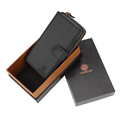Top4cus - Custodia a portafoglio in pelle sintetica, con 11 scomparti per carte di credito, con chiusura magnetica e specchio per iPhone, Nero, iphone 7plus