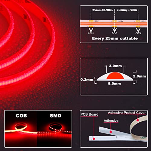 TOPAI Striscia LED COB 12V Rosso IP65 Impermeabile 5M 480LED/M Alta Densità 2400LEDs Flessibile Tagliabile Luci a LED Per Casa Camera Cucina