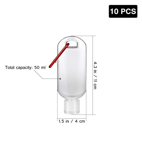 TOPBATHY 10 bottiglie ricaricabili da 50 ml igienizzanti per le mani trasparenti vuote bottiglie di alcol con gancio (colore casuale)