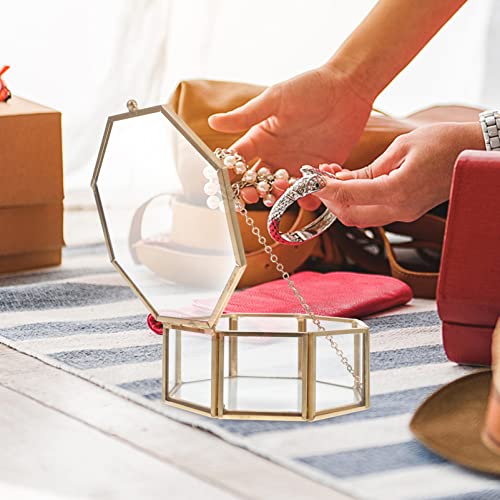 TOPBATHY Portagioie in Vetro Trasparente per Collana Ottagonale, portagioie con Anelli, per Matrimoni, Feste Nuziali (Dorato)