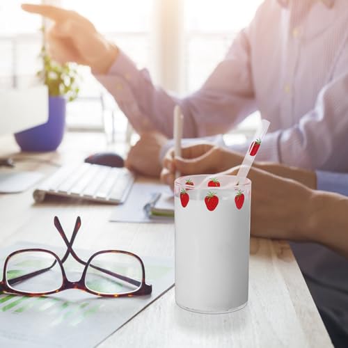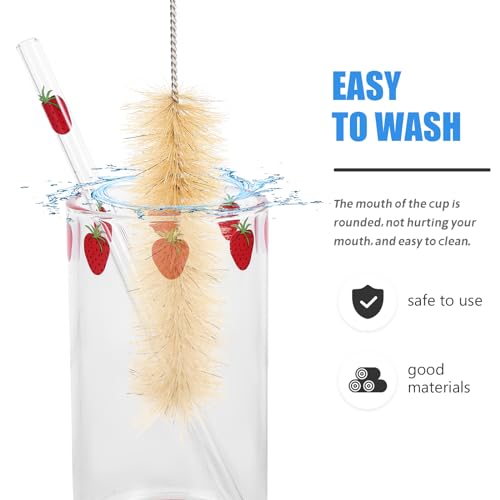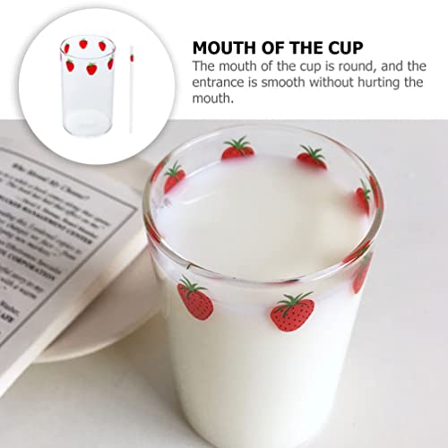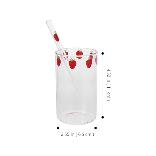 TOPBATHY 1 Set di Vetro di Fragola Tazza di Vetro Latte Resistente al Calore Bottiglia con Paglia Carino Succo Di Caffè Acqua Bere per Casa Office