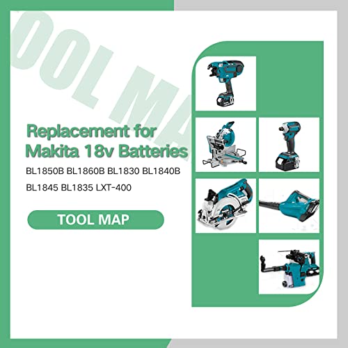 Compatibile con per Makita18 V BL1840B, BL1840, BL1830b, BL1830, BL1820, BL1815, BL1825, BL1835, BL1845, 194205-3, 1944430-1, 19444204-5, 196363-0, 19667673-6, LXT-400, ecc. Adatto per caricabatterie DC18RC/DC18RD 18V.