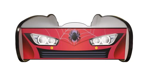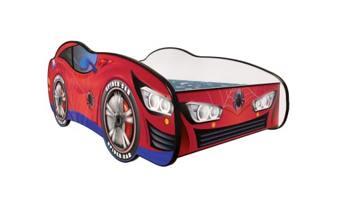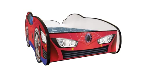 Topbeds Letto per auto, lettino per auto, con protezione anticaduta, letto per ragazzi con materasso, lettino con rete a doghe per ragazzi e ragazze, Super Heroes (Spider Car, 160 x 80 cm)