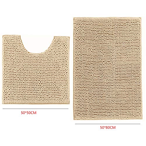 TOPCHANCES Tappetini da Bagno 2 Pezzi Tappetini da Bagno Antiscivolo, Assorbenti in Microfibra Tappeto da Bagno Lavabile in Lavatrice (Giallo Chiaro, 50 * 50cm,50 * 80cm)