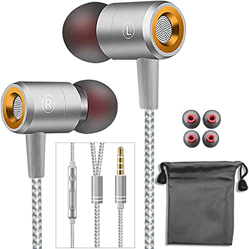TOPCHK Cuffie, Cuffie Audio Cuffie Auricolari in-Ear con Microfono e Telecomando Cuffie Jack da 3,5 mm Presa per Huawei Xiaomi Sony (Argento)
