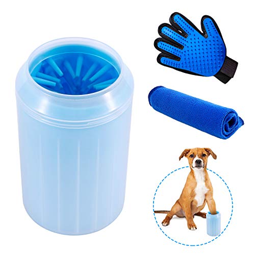TOPCRAZY Pulitore zampa per cani, pulitore per zampe per animali domestici, pennello portatile, pennello per la pulizia, tazza per cani, pulitore per cani Clever Dog Feet Washer (include asciugamano per strofinare e spazzole per animali domestici)