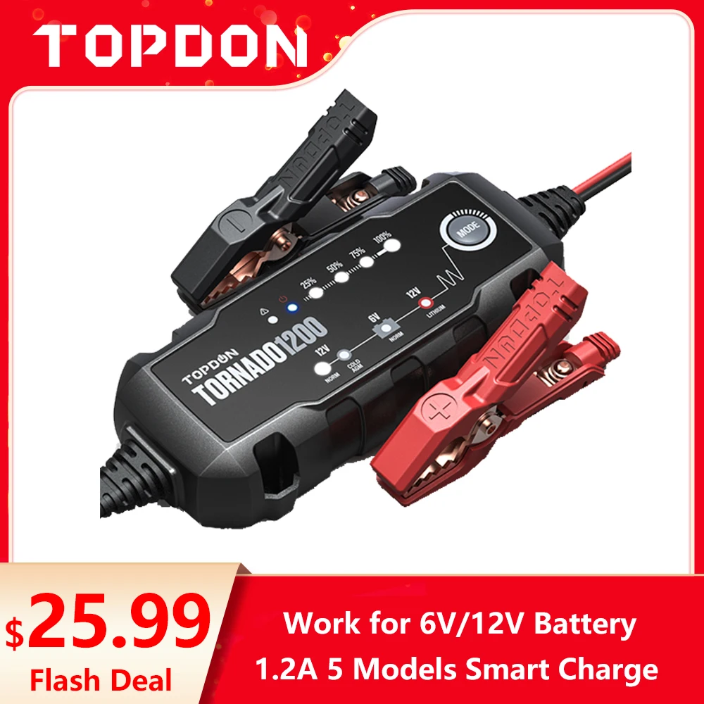 TOPDON T1200 Automatic Car Battery Charger 6V 12V Smart Charger Power Puls Repair Chargers Wet Dry Lead Acid Battery Charger