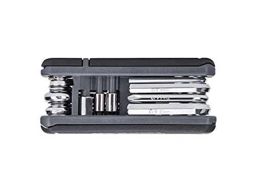 Punte esagonali da 2/2,5/3/4/5/6/8, punte a stella T15, T25, T30, cacciavite a croce, tendiraggi 14/15 G, gancio da carico, 2 levacopertoni, toglivalvole Presta e smagliacatena