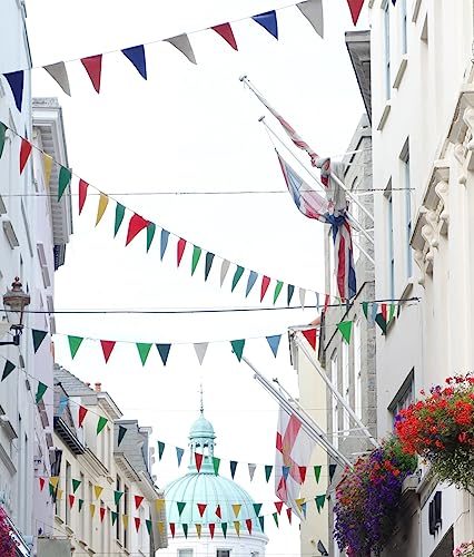Topeedy Striscione multicolore da 200 m, in nylon, con 300 bandiere triangolari grandi, per interni ed esterni, compleanni, vacanze, celebrazioni, feste, casa, giardino