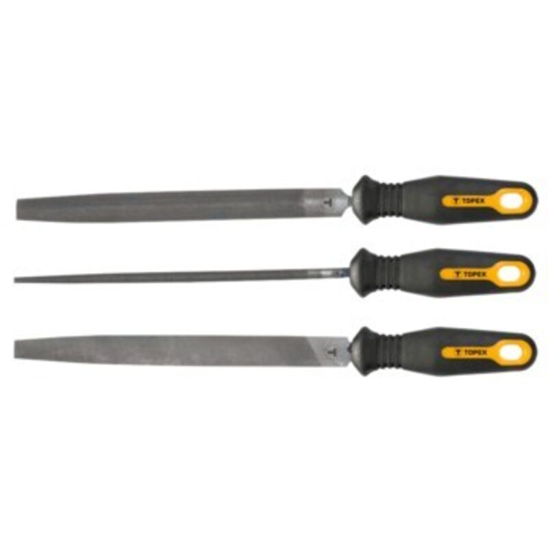 TOPEX - SET 3 LIME MANICATE PER METALLO 200MM SEMICIRCOLARE/PIATTO/TONDO Lime per metallo acciaio, resistenti e con manico in plastica antiscivolo, per limare virtualmente qualsiasi tipo di metallo con massima cura e massima sicurezza.