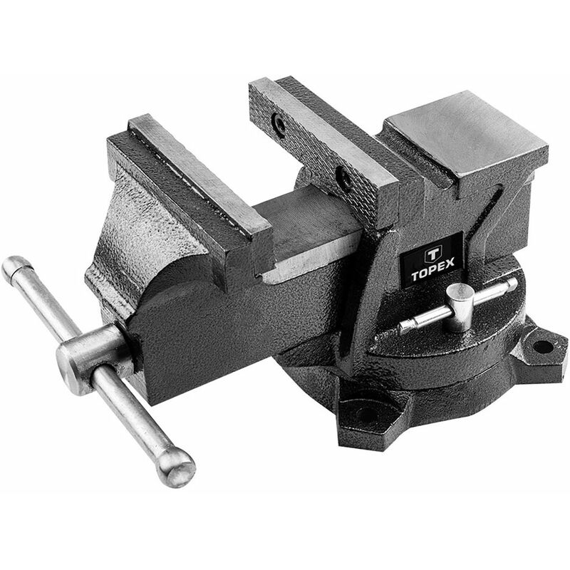 Adatta per il fissaggio di articoli soggetti a lavorazione manuale o meccanica. Solida struttura in ghisa con incudine e filettatura temprata. Ganasce zigrinate. La base girevole consente di posizionare il pezzo nella posizione di lavoro più comoda. 5902062040053