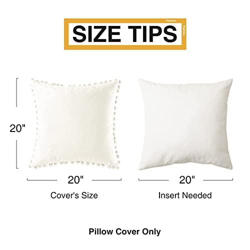 Topfinel Federe Cuscini per Divano Copricuscini Arredi Morbido di Velluto con Pom Poms in Tinta Unita Eleganti e Moderni Fodere per Casa Cuscina Camera da letto Salotto,2 Pezzi,50x50CM,Crema