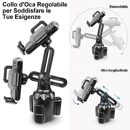 TOPGO Supporto portabicchieri, supporto per telefono cellulare, supporto per cellulare per iPhone 14, Samsung e altri smartphone (Black)