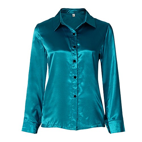Topgrowth Camicia a Maniche Lunghe da Donna Seta Felpe Elegante Ufficio Lavoro Casuale Camicetta Primavera Top Shirt (Verde, M)