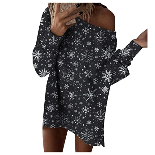 Topgrowth Donna Natale Vestito Senza Maniche Stampare Abiti Annata Swing Vestito con Cintura (Nero, S)