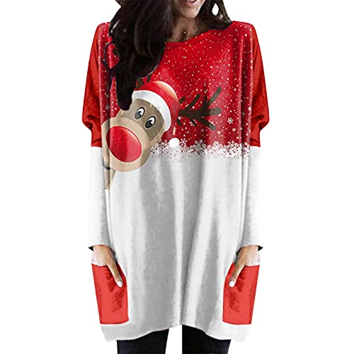 Topgrowth Donne Freddezza Babbo Natale Costume Maglietta Asimmetrico Natale Fantasia Vestito (L, Rooso)