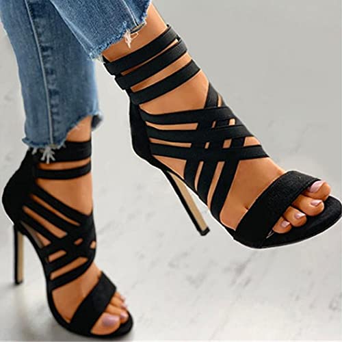 Topgrowth Scarpe col Tacco Alto Donna Primavera Cross-legata Scarpe Tacchi Sottili Superficiale Festa Club Scarpe (41, Nero)