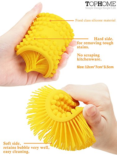 Tophome, spazzola per la pulizia, multiuso, per la cucina, in spugna, spazzola per piatti, per lavare frutta e verdura, sottopentola, Yellow, Yellow