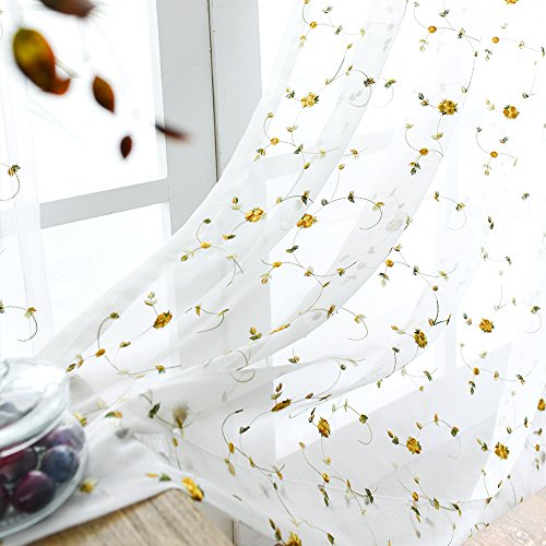 Topick rose ricamato rod Pocket sheer tenda, Yellow, W55"xL63"