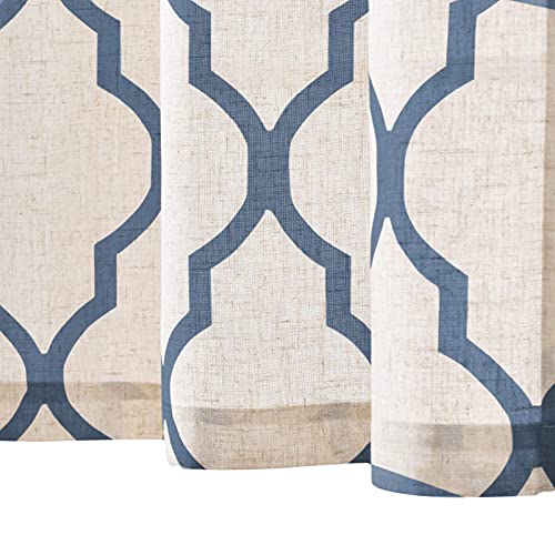 TOPICK Tende geometriche effetto lino, per cucina, sala da pranzo, piccole finestre, blu, set da 2 pezzi, 65 x 90 cm, blu su beige