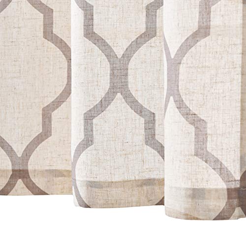 TOPICK Tende geometriche effetto lino, tenda da cucina marocchina, oscurante, 1 pezzo (130 x 45 H (cm)-1 pezzo, grigio su beige)