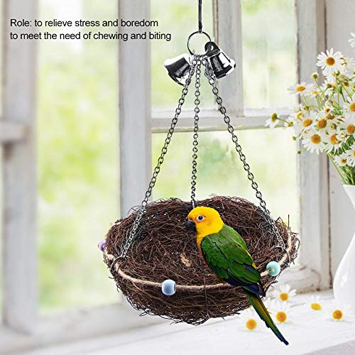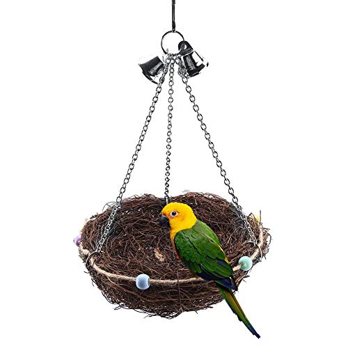 TOPINCN Rattan Paglia Pappagallo Nido Uccelli Domestici cacatua Gabbia Swing Giocattolo con Campane capanna Tenda Letto casetta pappagalli Giocattoli(27 x 12 cm)