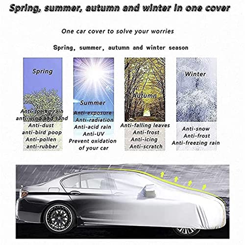【Design conveniente】 Sul lato del conducente è presente una cerniera nella copertura dell'auto per un facile accesso. È conveniente per te entrare in macchina nel caso in cui il coperchio sia acceso, le strisce riflettenti possono prevenire incidenti di collisione in ambienti bui.