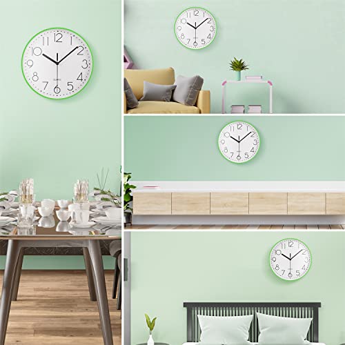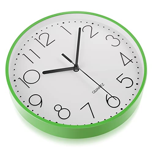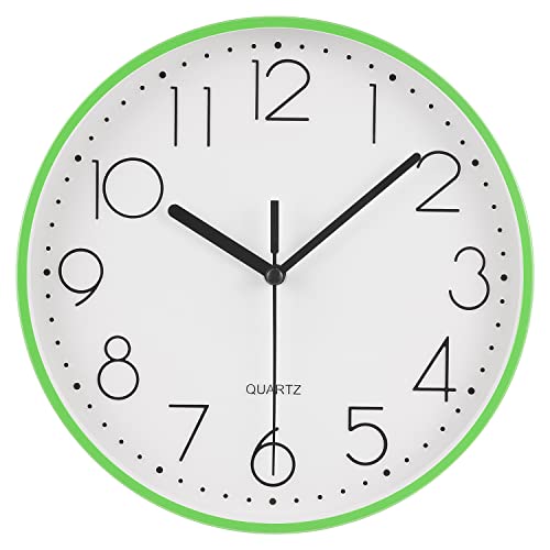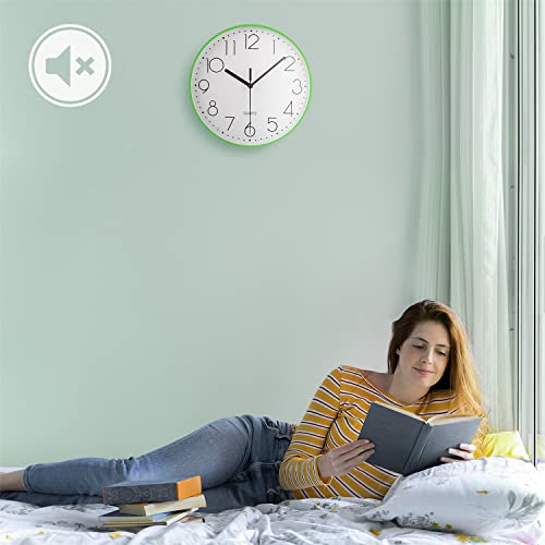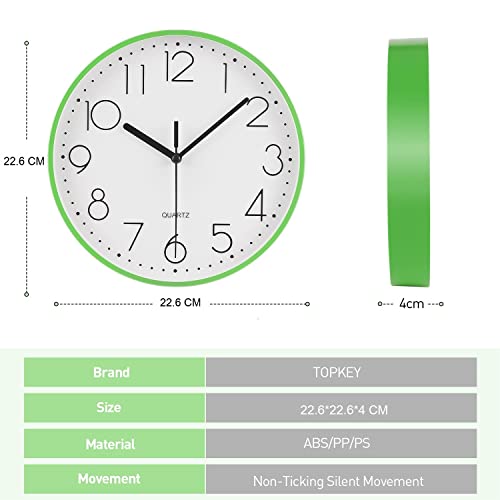 Topkey 9” Silent Round Wall Clock Arabic Numerals Easy Read Clock for Living Room, Bedroom,school and nursery Battery Not Included - Green