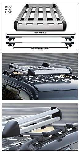 Tetto cesto Dimensione: 127 cm in lunghezza, 96,5 cm in larghezza e 12,7 cm in altezza. Alta qualità tetto rimovibile cesto fatto di alluminio leggero. Superficie antiscivolo. Barre trasversali saranno necessari al fine di installare il cestino sul vostro veicolo. Compatibile con forma quadrata stile barre trasversali con lunghezza non meno di 127 cm Dimensioni di barre trasversali devono essere 1,9 x 3,2 cm in modo da adattarsi