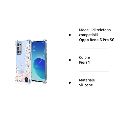 Topme Custodia per Telefono per OPPO Reno6 Pro 5G (6.55" Inches), Cover per Cellulare con Motivo Verniciato Trasparente in Morbido Silicone TPU - Fiori 1