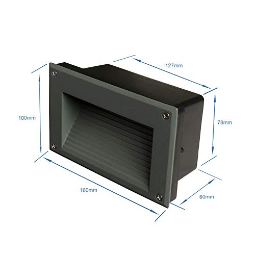 LED Faretto incasso a parete con potenza di 3W, tensione di 160-265V, Dimensioni di 160*100*25 mm, 3W OSRAM LED SMD, Done drive. Luminosità: 330LM - Colore della luce: bianco caldo (3000k).