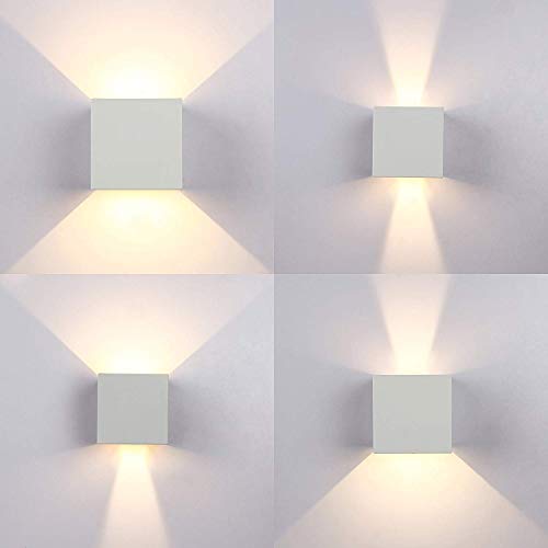 Topmo-plus 12w lampada da parete a LED con angolo di visualizzazione regolabile/Applique a LED per esterni/interni/bridgelux COB/Illuminazione a parete Quadrato 10CM (Bianco/bianco caldo)