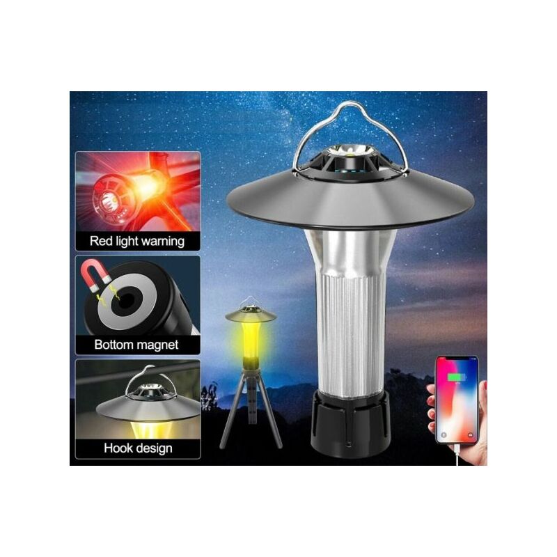 Piccola torcia / lanterna da campeggio dotata di cavalletto, paralume e gancio. Specifiche Batteria ricaricabile 2200mAh 1 Led frontale a luce bianca 8 Led a luce calda 4 Led a luce rossa (SOS) Dimensioni torcia: 11 x 4cm Dimensioni cavalletto: 14cm Paralume: 8.5cm Contenuto della confezione Torcia Paralume Cavalletto Cavo USB