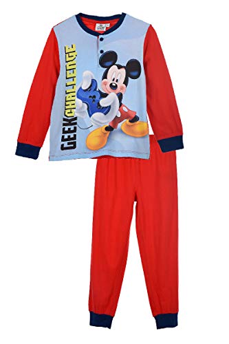 Topolino - Set Pigiama Maniche Lunghe + Pantaloni Mickey Mouse (Rosso, 3 Anni)