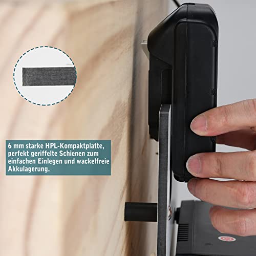 [Supporto per batteria per Makita] TOPOWN 3 in 1 da parete fino a 4 batterie Makita (14,4 V e 18 V). La piastra compatta HPL da 6 mm di spessore del supporto da parete per batteria offre una guida scanalata ideale che consente un facile inserimento e una conservazione delle batterie senza oscillazioni. Hai tutto in vista e non devi più cercare batterie.