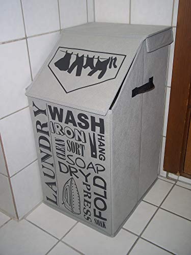 TOPP4u Cesto portabiancheria pieghevole con coperchio grigio.