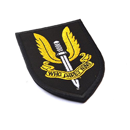 Toppa per airsoft SAS, stile SWAT nera, ricamata, da braccio, militare, da cucire, per cappelli, borse e giacche
