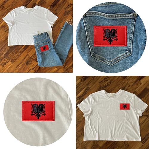 Toppa Bandiera Albania da Cucire - 8 x 5 cm - Emblema Nazionale Albanese per Zaino, Toppa Ricamata Rettangolare Decorativa, Applicazioni per Tessuti, Patch Militari Esercito