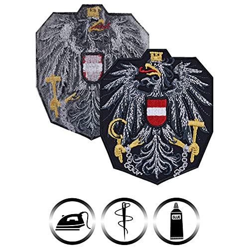 Toppa ricamata da applicare con ferro o cucitura: Patch Austria stemma Repubblica Austriaca | Aquila Austria | Biker/Rocker/Austria-Fan | Patch per jeans/cappello/maglietta/giacca | 75x90mm