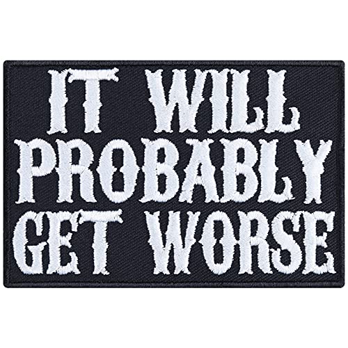 Toppa ricamata da applicare con ferro o cucitura: Patch Biker "It will probably get worse" Festival per cucire/ferro | Adesivi resistenti alle intemperie per tutti i tessuti | 90x60mm