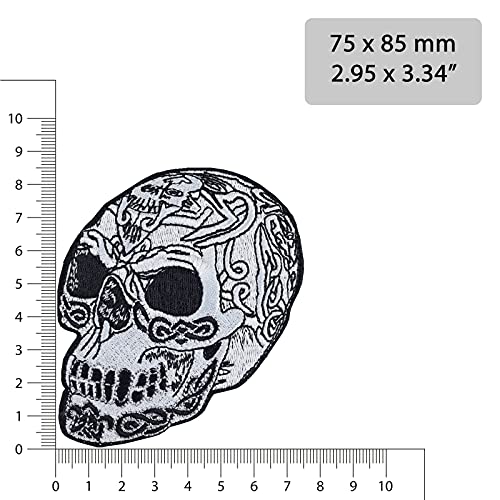Toppa ricamata da applicare con ferro o cucitura: "Skull head" Biker annodare/ferro | Scheletro Skull Applicazione | Heavy Metal adesivo | Applicazione tessuti | 85x75mm