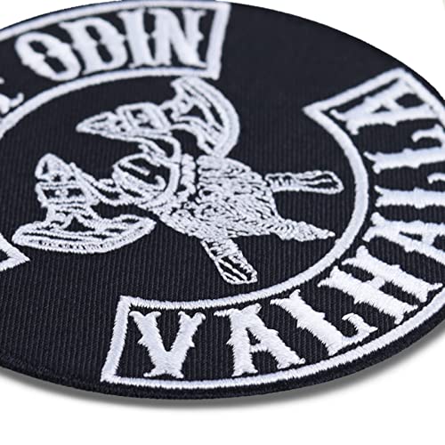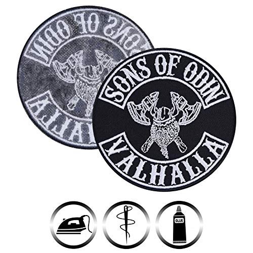 Toppa ricamata da applicare: "SONS OF ODIN - VALHALLA" patch vichingo | Dio vichingo Odino con ascia | Regalo per fan dei vichinghi | Applicazione per tessuti | 90x90mm