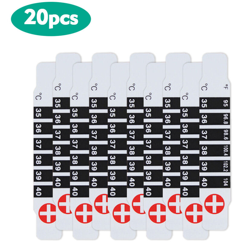 Caratteristiche: Misura tascabile per famiglia o viaggio, adatto a tutte le età, adulti o bambini. Misura rapidamente (circa 15 secondi), le strisce di temperatura mostreranno la temperatura attuale attraverso la sua diversa variazione di colore, la gamma di misurazione mostra Fahrenheit e Celsius, da 95 104 a 104 ℉ e 35 ℃ a 40 ℃. Metodo di funzionamento: tenere entrambe le mani strettamente, premerle sulla fronte, controllare la febbre (tenere per 15 secondi). Riutilizzabile. Dopo l'uso, pulire l'adesivo del termometro per bambini con acqua e sapone e riporlo nella busta di plastica per evitare il sole e il calore. Quindi è più comodo e salutare rispetto al termometro digitale Sicuro da usare per il tuo adorabile bambino. specifiche tecniche: Colore: come mostra l'immagine QTY: 20PCS Formato del pacchetto: 12 cm * 10 cm * 5 cm Peso del pacchetto: 23g Leggere mentre è sulla fronte, VERDE indica la temperatura corretta, TAN / ROSSO = detrarre 0,5 ℃ (o 0,9 ℉), BLU = più 0,5 ℃ (o 0,9 ℉).