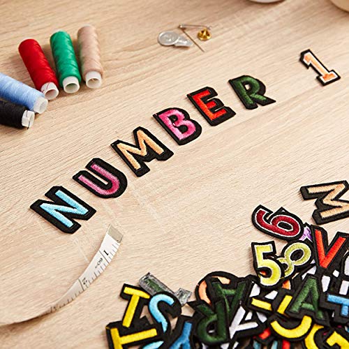 Set di 124 toppe ricamate termoadesive a forma di lettere e numeri, da applicare col ferro o cucire, dimensioni assortite, per zaini, vestiti, giacche
