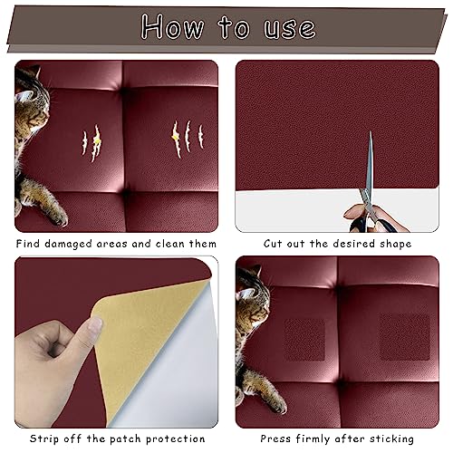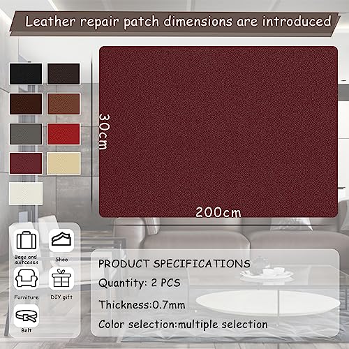 Toppe Per Riparazione Autoadesive in Pelle, Patch di Riparazione in Pelle, 2 Rotoli 30x200cm Patch Pelle Adesiva, Pelle Artificiale Rinnovamento Toppa Adesiva per Divano, Borsa in Pelle (Borgogna)