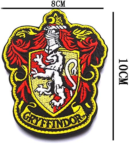 4 toppe con stemma di Harry Potter House of Grifondoro di Hogwarts con gancio e anello di supporto, 10 x 8 cm, per cappotti, cappotti, cappotti, cappelli, zaino