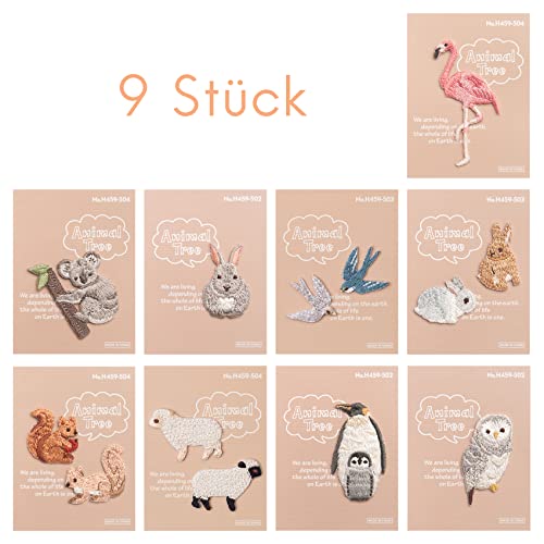 Toppe Termoadesive Animali 9 Pezzi, Patch Ricamata per Tessuti, Vestiti, Jeans, per bambini o adulti