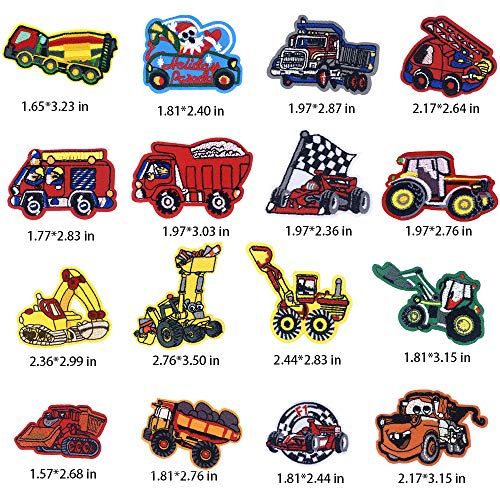Toppe Termoadesive Bambini di Auto 16pcs Camion Toppe per Vestiti Adulti Uomo Toppe per Vestiti da Cucire Applicazioni per Giubbotti Jeans T-Shirt Vestiti Borse